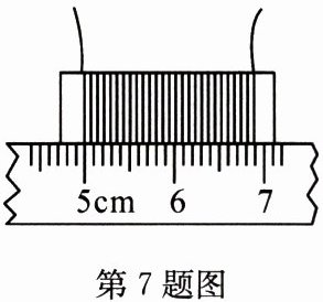 7. 如图所示是取一段新的电阻丝紧密绕制在粗细均匀的铅笔上(共20圈),用刻度尺测量它的直径。由此可知:电阻丝的直径为____mm。若电阻丝的直径为d,铅笔的直径为D,则绕在铅笔上的电阻丝长度大约为____(用字母表示)。如果在测量时绕制得不够紧密,将会使测量结果____(选填“偏大”“偏小”或“不变”)。