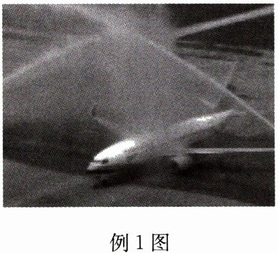 例 1某次仪式中,摄影师拍摄了如图所示的“飞机过水门”照片,他所用的照相机的镜头相当于一个凸透镜,像成在照相机的底片上。下列说法正确的是( )