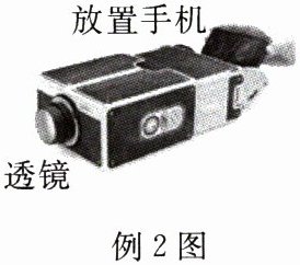 例 2如图是小强用手机、透镜和纸盒自制的简易投影仪,能将手机上的画面放大投射到白色墙上。下列说法正确的是( )