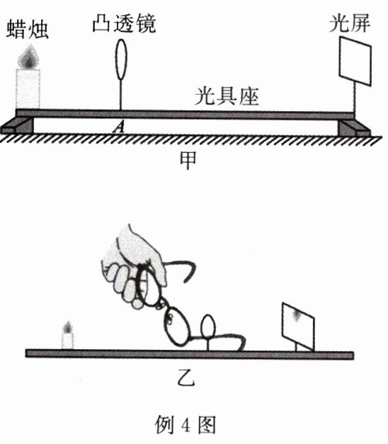 例4 小明同学利用下图装置来研究凸透镜成像。