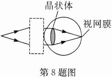 8. 如图所示为矫正远视眼的光路示意图,请在虚线方框内画出相应的透镜。
