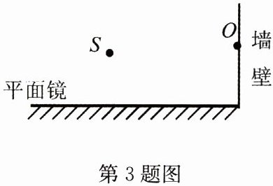 3. 如图所示,从点光源S发出的一条光线射向平面镜,经平面镜反射后射向墙壁上的O点处。请作出这条入射光线并完成光路图。