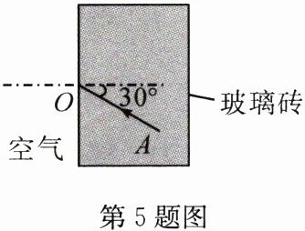 5. 在图中大致画出光从玻璃进入空气中的折射光线。