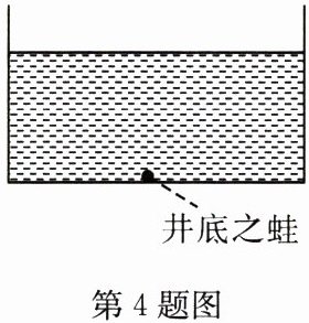4. “坐井观天,所见甚小”,青蛙在枯井和有水的井中“观天”的范围大小是不同的。如图所示,一只青蛙在井底(井中有水)中央,请用光路图作出井底之蛙“观天”的最大范围。