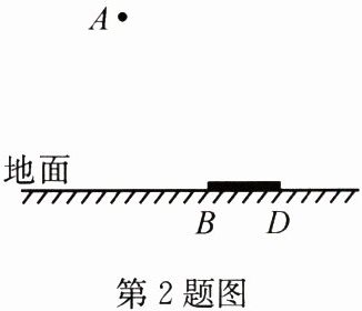 2. 如图,在路灯(A点表示)的照射下,竖立在地面上的竹竿BC的影子为BD,请画出竹竿BC。(保留作图痕迹)