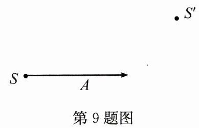 9. 如图所示,S′为点光源S在平面镜MN中的像,SA为光源S发出的一条光线,请在S和S′之间画出平面镜MN,并完成光线SA的光路。