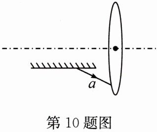 10. 有一点光源S,它在平面镜中的像与凸透镜的焦点F重合,S发出的一条光线经平面镜反射后,反射光线为a,如图所示。请在图中画出: