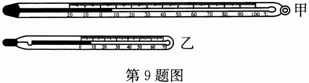 9. 疫苗通常需保存在低于9℃的环境中。夏季,运输过程中为监测疫苗温度是否超标,应在冷藏箱内放置图中所示的温度计______。在接收点,为正确读数,验收人员______(选填“能”或“不能”)把温度计从冷藏箱中取出。温度计示数如图所示,表明疫苗______(选填“安全”或“不安全”)。
