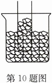 10. 如图所示,把盛有碎冰块的大试管插入烧杯里的碎冰块中,用酒精灯对烧杯底部慢慢加热,当烧杯中的冰块大部分熔化时,试管中的冰( )
