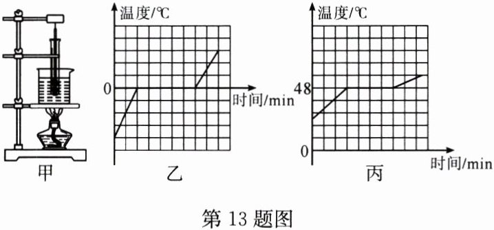 13. 为了探究物质熔化的规律,小靖同学所在的学习小组选取了冰与海波两种物质,并利用如图甲所示的实验装置进行探究。