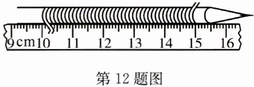 12. 将一粗细均匀的金属丝在圆柱形杆上紧密排绕 40 圈,如图所示,线圈总长度 L = ______ mm,则金属丝的直径 d = ______ cm。测量时,如果第一次 n 取 20 圈,第二次 n 取 50 圈,比较两次测得的金属丝直径,第______次测量误差较小。