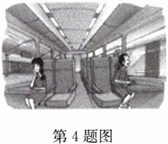 4. 你也许有过这样的体验:甲、乙两列火车并排停在站台上,你坐在甲车车厢向乙车车厢观望,如图所示,突然你觉得自己坐的火车开始缓缓地前进了,但是,“驶过”了旁边乙车的车尾你才发现,实际上甲车还停在站台上,而旁边的乙车却向相反的方向开走了。“你觉得自己坐的火车开始缓慢地前进了”和“甲车还停在站台上”,所选的参照物分别是( )