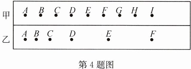 4. 如图所示,甲、乙为某同学用打点计时器测量时间时打出的两条纸带中的一段。打点计时器每打两个点的时间间隔为0.02s。