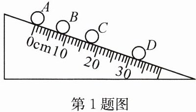 1. 一个小球从斜面滚下,用照相机每隔0.1s拍摄一次,记录小球运动情况的照片如图所示。则( )