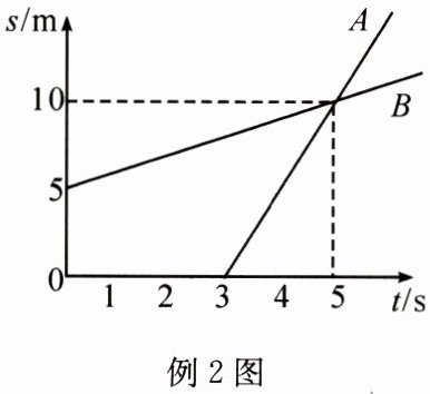 例2 物体$A$、$B向相同方向运动的s - t$图像如图所示,由图可知( )