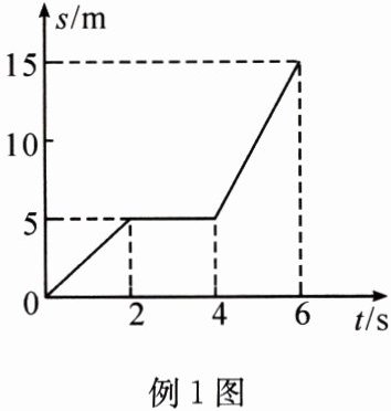 解析 根据图像可知:物体在$0\sim2\ s$做匀速直线运动,$2\sim4\ s$静止,$4\sim6\ s$做匀速直线运动。物体在$6\ s内通过的路程为15\ m$。物体在$2\sim4\ s$内,由于通过的路程没有发生变化,所以它在这$2\ s$内静止。物体在前$2\ s内通过的路程为5\ m$,所以由速度公式求解得到速度为$2.5\ m/s$;后$2\ s内通过的路程是10\ m$,所以用同样的方法求得速度为$5\ m/s$,故物体在前$2\ s内和后2\ s$内的速度不相等。从整个过程来看,物体在$6\ s$内做变速直线运动,由平均速度公式求解得