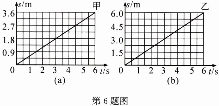 6. 甲、乙两车同时从 P 点出发,沿同一方向做匀速直线运动,两车的 s - t 图像分别如图(a)、(b)所示。两车先后到达距 P 点 18 m 的 Q 点处,时间差为 Δt,则( )