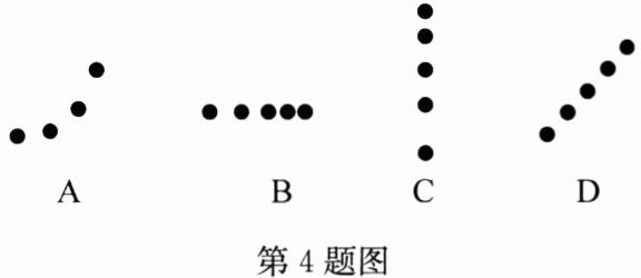 4. 如图是利用每秒闪光 30 次的照相装置拍摄到的四个物体的闪光照片片段,图中的黑点表示在不同时刻物体的位置,其中可能做匀速直线运动的是( )