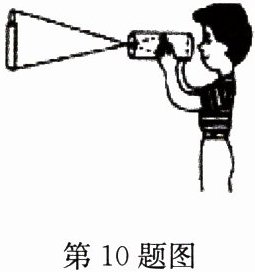 10. 小明同学利用如图所示的装置做小孔成像实验。他将饮料罐的前端开了一个很小的三角形小孔,后端开口,并蒙上半透明的纸,他把小孔对着烛焰,则他在半透明纸上看到的是( )