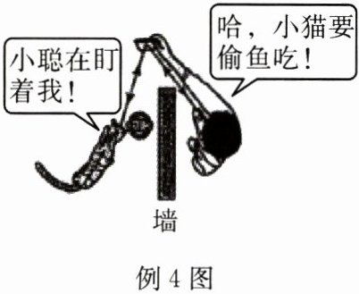 例4 如图所示,小聪在平面镜中看到了猫的眼睛,不论这块平面镜有多么小,猫也一定会通过这个平面镜看到小聪的眼睛,这个事实说明( )