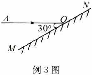 例3 请在图中画出入射光线$AO$的反射光线并标出反射角的度数。