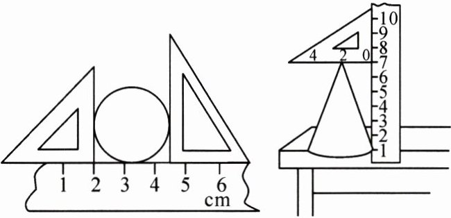 2. 测球的直径或圆锥的高时用刻度尺和三角板组合的“____”(如图所示)。