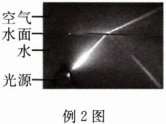例2 在“探究光折射时的特点”实验中,让光源发出的一束光从水中以不同的角度射入空气,观察到光束在水中和空气中的径迹如图所示。回答以下问题:
