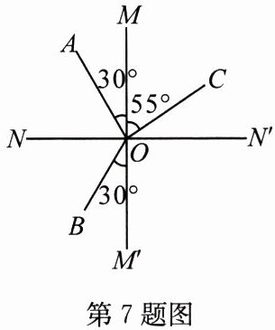 7. 如图所示是光在空气和玻璃两种介质中传播时同时发生反射和折射的光路图,其中______是入射光线,入射角的大小为______,折射角的大小是______,法线是______,界面的______(选填“上”“下”“左”或“右”)侧是空气。