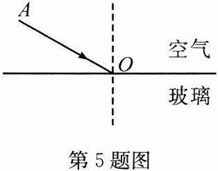 5. 在图中画出入射光线$AO$对应的折射光线的大概位置。