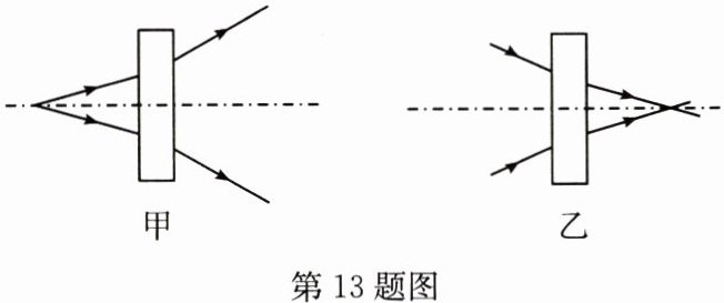13. 请在如图所示的甲、乙方框中分别填入合适的透镜。
