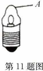 11. 微型手电筒所用的小灯泡如图所示,小灯泡前端的$A$部分相当于______,对光有______作用。