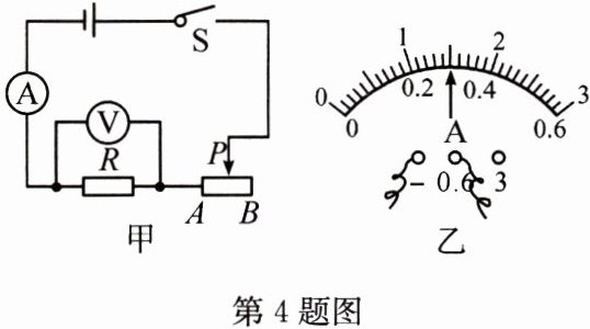 (2)闭合开关,调节滑动变阻器的滑片,当电压表的示数为$3 V$时,读出图乙中电流表的示数为