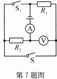 7. 如图所示,电源电压保持不变,闭合开关 $ S $,电压表和电流表均有示数,再闭合开关 $ S_1 $,电流表的示数