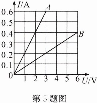 5. 两个电阻 $ A $ 和 $ B $,通过它们的电流与其两端电压的关系如图所示。则由图可知,$ R_A = $