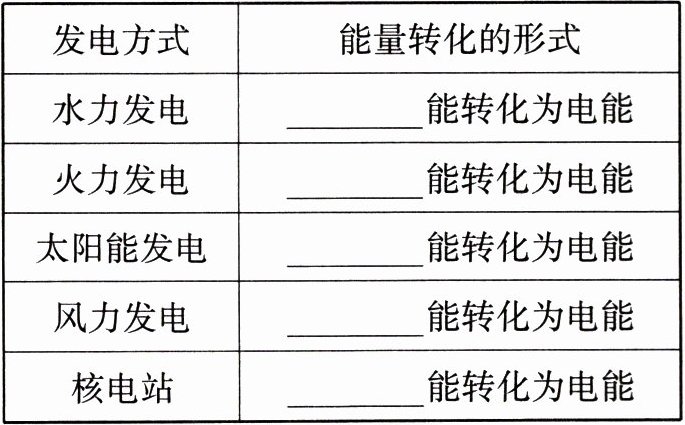 (2)一些常见发电方式中的能量转化