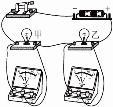 ①如图所示,把两盏规格不同的小灯串联,用电压表分别测量它们两端的电压,同时观察比较小灯的发光情况。