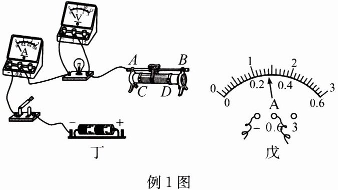 ③排除故障后,闭合开关,缓慢移动滑动变阻器的滑片,同时观察______表示数的变化,当小灯泡正常发光时,电流表示数如图戊所示,则小灯泡的额定功率为______$W$。