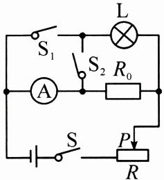 ② 闭合 $ S $、$ S_1 $,断开 $ S_2 $,电流表测出通过 $ R_0 $ 与 $ L $ 的合电流 $ I_{总} $。