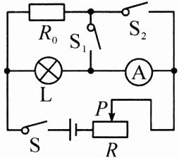 ② 闭合 $ S $、$ S_2 $,断开 $ S_1 $,电流表测出通过 $ R_0 $ 与 $ L $ 的合电流 $ I_{总} $。