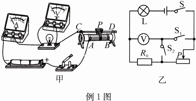 ① 按图乙连接电路,检查无误后,闭合开关 $ S $、$ S_1 $,调节滑动变阻器滑片直至电压表示数为