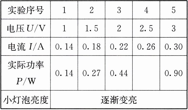 | 实际功率 $ P/W $ | 0.14 | 0.27 | 0.44 | | 0.90 |