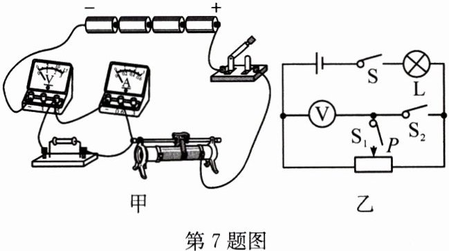 。(6) 完成上述实验后,小明又利用原实验器材,设计了如图乙所示的电路,测出了额定电压为 $ 2.5 \, V $ 的小灯泡的额定功率。请帮他将实验步骤补充完整: