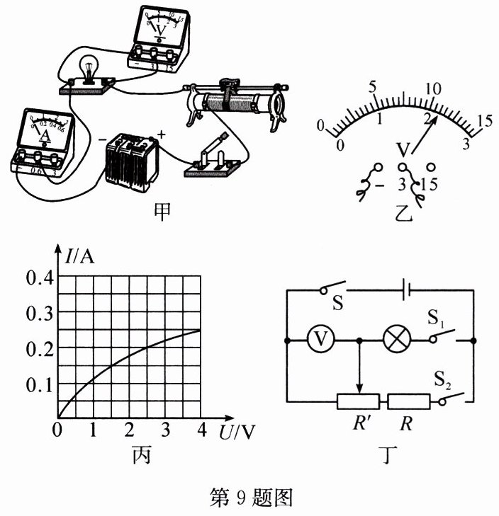(3) 通过小灯泡的电流随它两端电压的变化如图丙所示,则小灯泡的额定功率为____ $ W $。