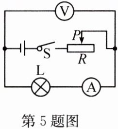 5. 在如图所示的电路中, 电源电压为 4.5 V 且保持不变, 电压表量程为 0 ~ 3 V, 电流表量程为 0 ~ 0.6 A, 滑动变阻器 R 的规格是“10 Ω 1 A”, 灯泡 L 标有“2.5 V 0.5 A”字样。若闭合开关 S, 两电表示数均不超过所选的量程, 灯泡两端电压不允许超过额定电压, 不考虑灯丝电阻的变化。下列说法正确的是 (