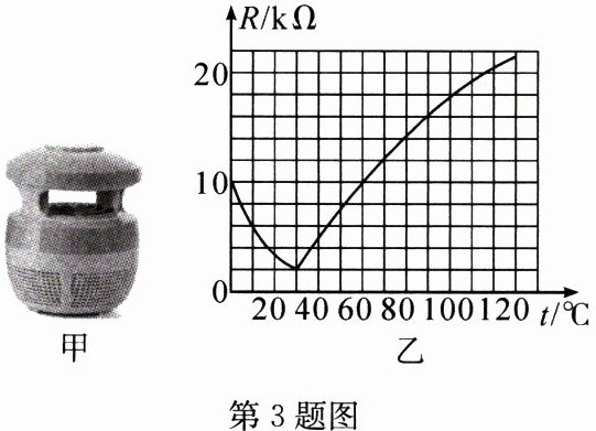 热材料,其电阻值随温度变化的规律如图乙所示。