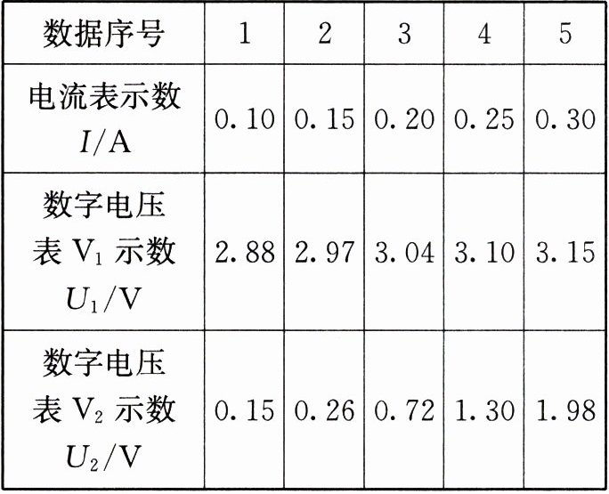 |数字电压表$ V_1$示数$ U_1/V$|2.88|2.97|3.04|3.10|3.15|