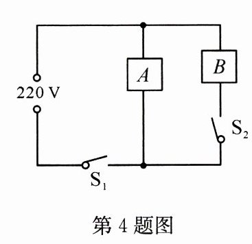 4. (2024·新疆)如图为家用电吹风的部分参数及内部电路简图,它内部有一根电热丝和一个风扇,通过开关$S_1$和$S_2$可实现冷风和热风两挡功能。