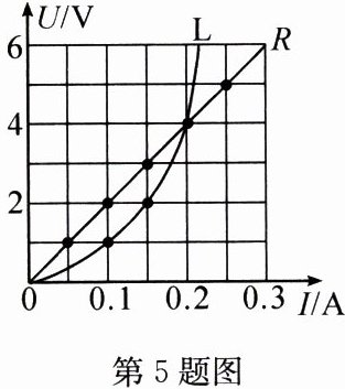 5. (2024·四川广元)如图是某学习小组对小灯泡L和定值电阻R的阻值进行测量后,根据实验数据作出的U-I图像。若将L和R串联接在8V的电源两端,L与R的电阻之比为