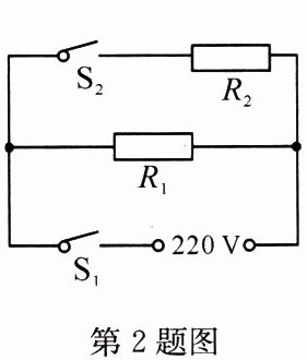 效应工作的。某品牌电饭煲有加热和保温两挡功能,简化电路如图$,R_1= 242Ω,R_2= 60.5Ω。$当该电饭煲处于加热挡工作10min,其消耗的电能是6×10⁵