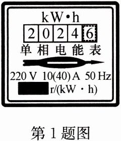 1. (2024·黑龙江绥化)如图为家庭电路中的电能表,该电能表允许接入用电器的最大总功率是